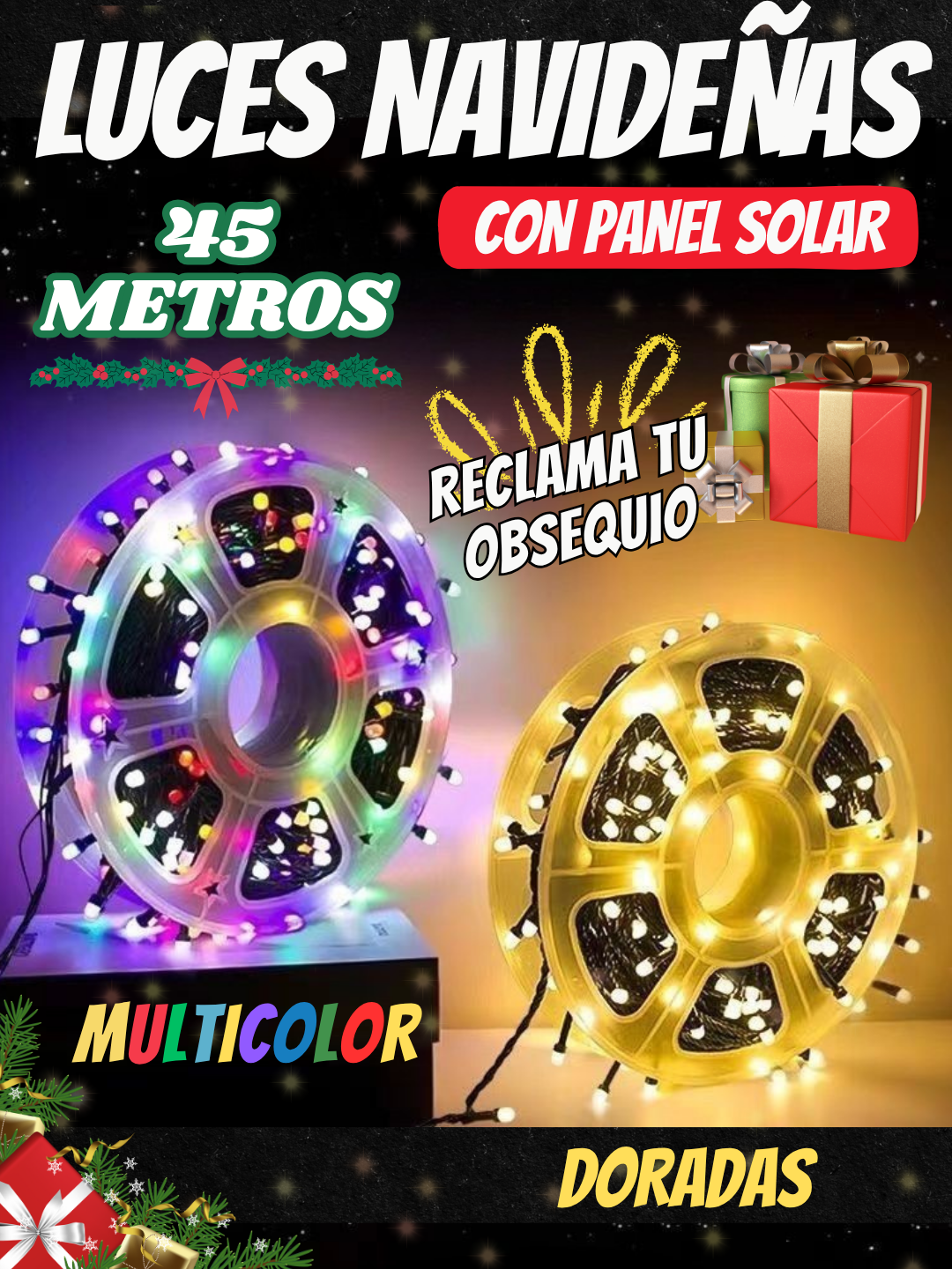 LUCES DE NAVIDAD 45 METROS CON PANEL SOLAR + OBSEQUIO
